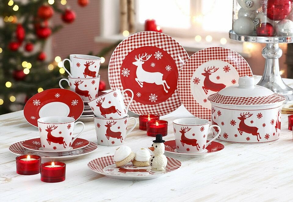 Классическая рождественская символика. Тарелки с изображениями ёлок, венков, колокольчиков или тематических зимних сцен создают традиционную атмосферу праздника. Такие мотивы ассоциируются с семейным ужином, теплом и домашним уютом. Они подходят для интерьеров, оформленных в красно-зелёной гамме или в классическом стиле, и хорошо сочетаются с деревянными аксессуарами, свечами и густыми текстильными фактурами.