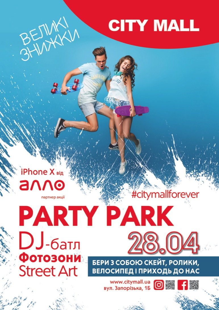День рождение ТРК City Mall: Party Park, cкейтборд соревнования, розыгрыш – iPhone X