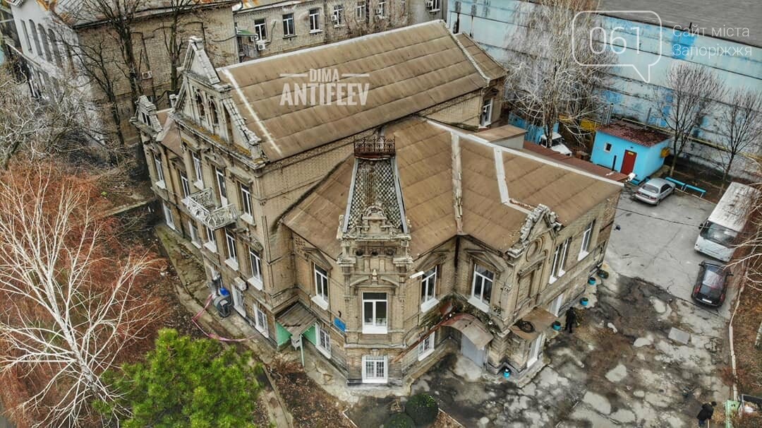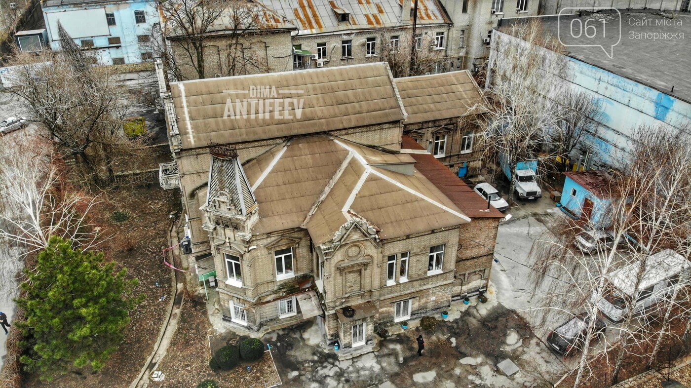 Краевед Дмитрий Антифеев сделал высотные фото бывшего особняка меннонитского промышлленника Абрахама Коопа в Запорожье. Дом находится в центре города, однако не виден за высоким забором.