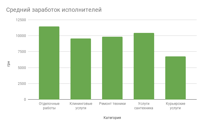 услуги сантехника. Средний чек такого задания составляет 490 грн, а средний заработок исполнителя в месяц - 10 455 грн;