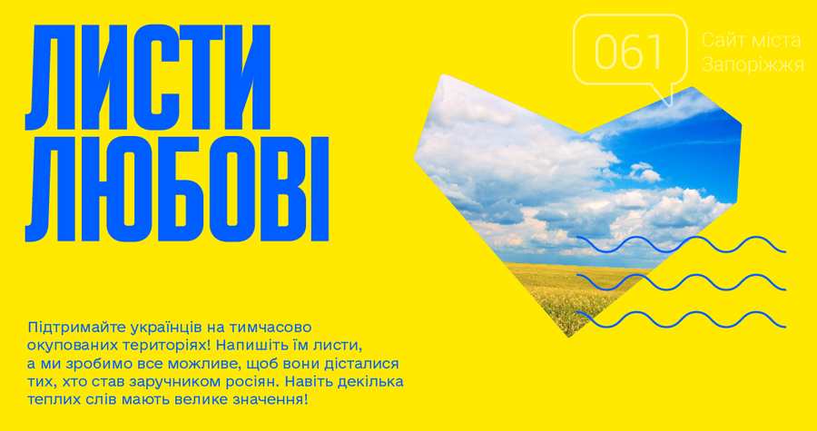 На сайті lettersoflove.org.ua кожен охочий може написати теплі слова підтримки українцям, які залишилися в тимчасово окупованих містах та селах. Організатори проєкту планують зібрати щонайменше 10 тисяч послань, які будуть доправлені до пунктів призначення всіма можливими способами.