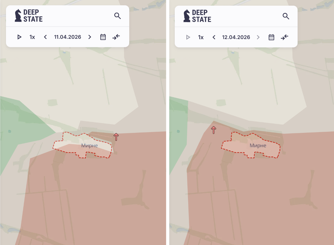 Загарбники захопили село Мирне, яке розташоване на південний захід від міста Гуляйполе. До цього, DeepState на картах відмічав, що ворог контролює половину населеного пункту.