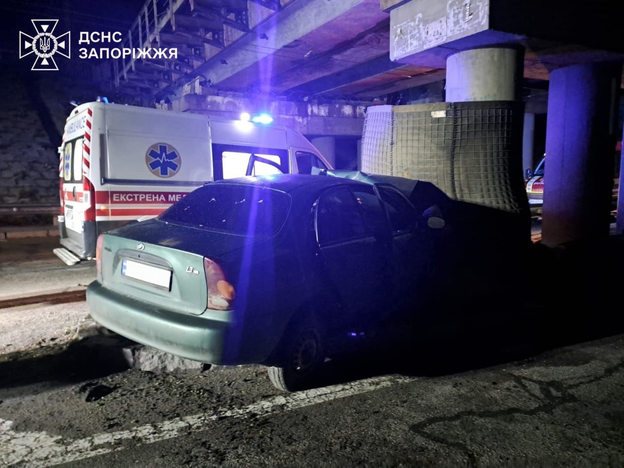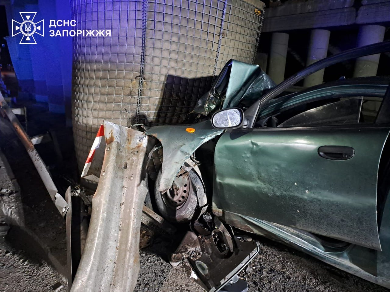 У Запоріжжі авто влетіло у опору мосту: водія затисло у пошкодженій машині