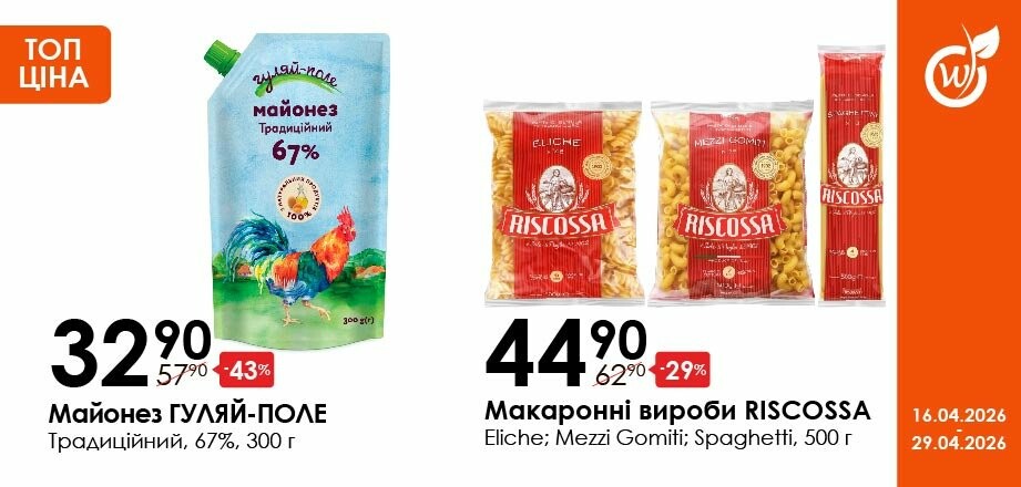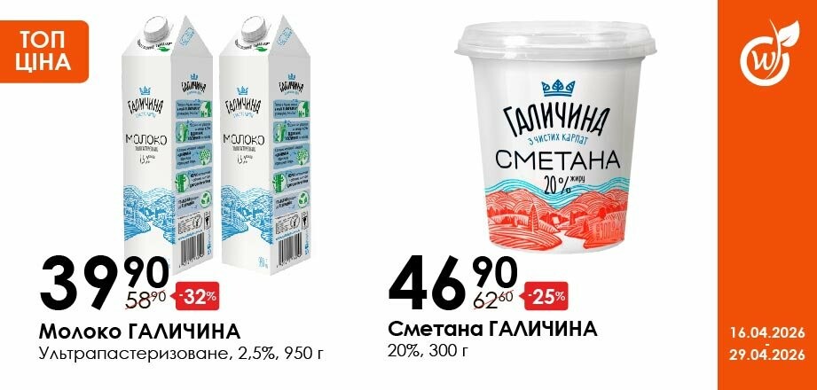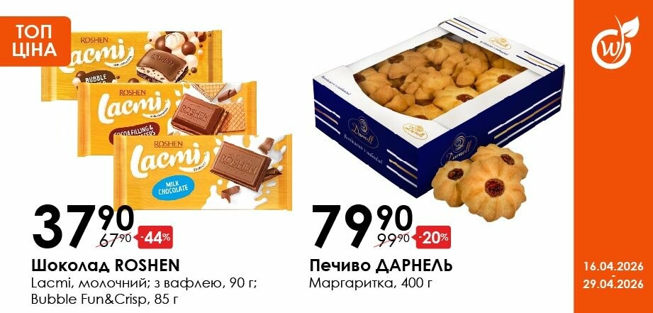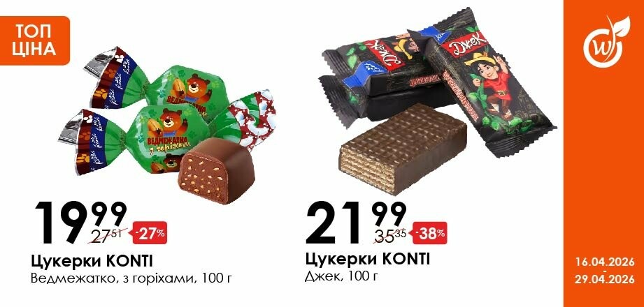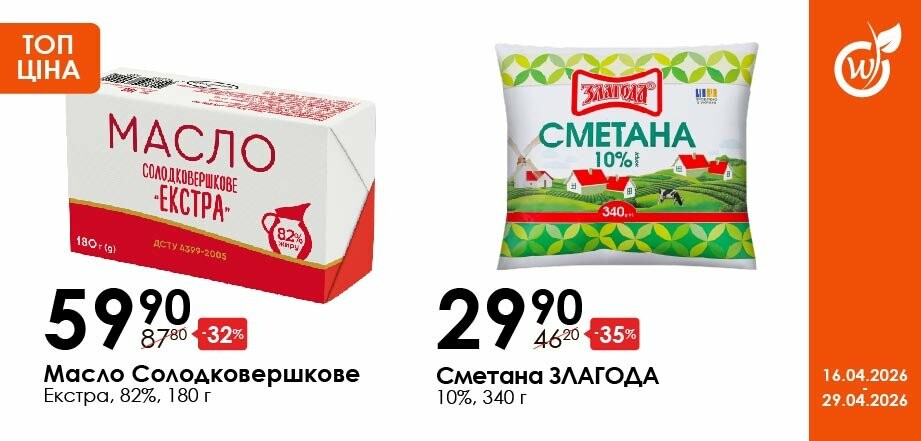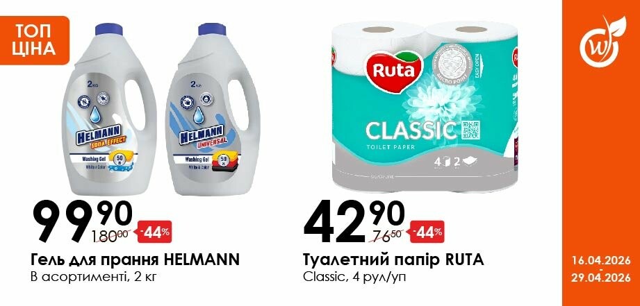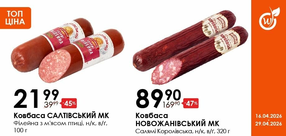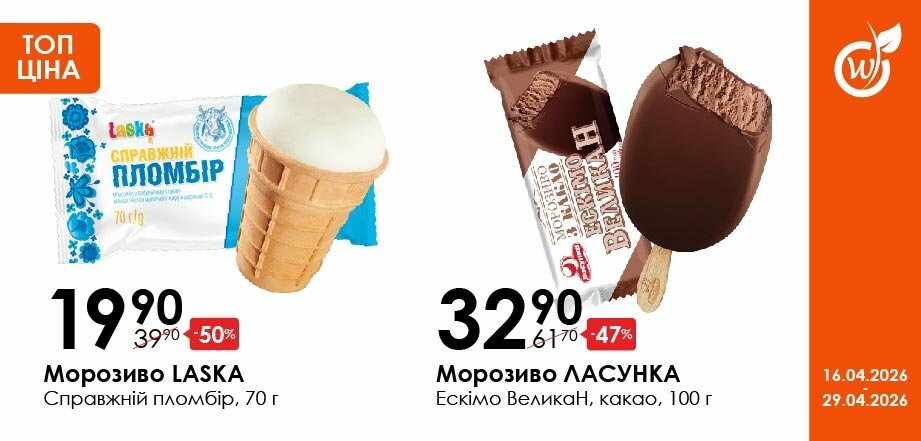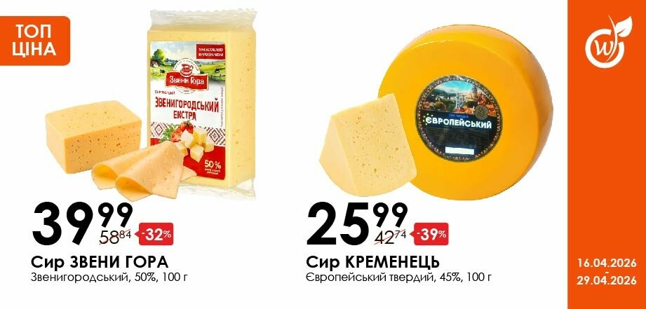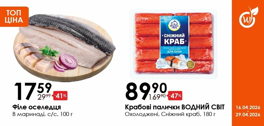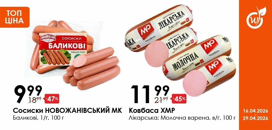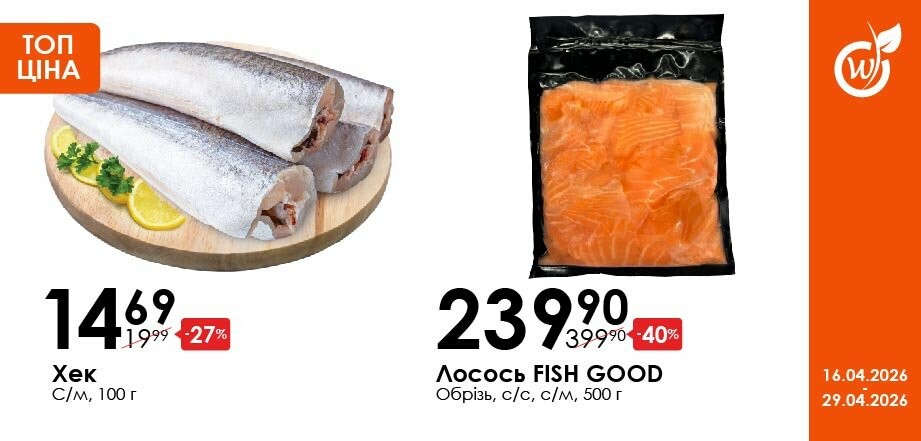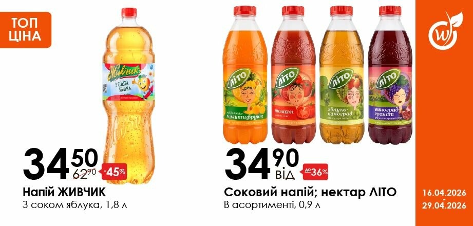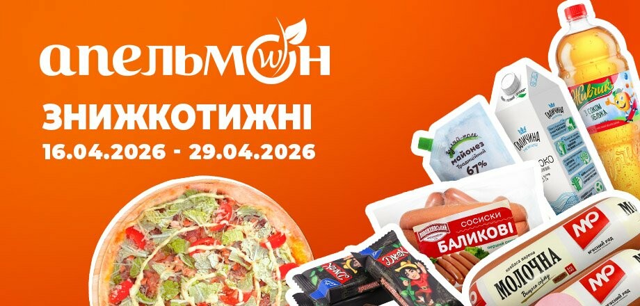 Акція діє з 16.04.26 до 29.04.26 включно за умови наявності товару в магазині. Усі знижки та адреси супермаркетів шукай у нашій газеті на apelmon.